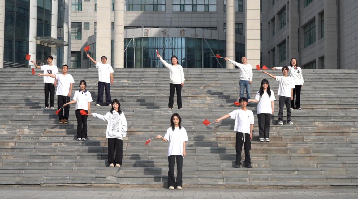 教工第二党支部师生联动,结合学院专业特色,师生们统一着装,手持鲜艳的国旗,于10月8日上午,结合快闪活动正式拉开帷幕。与传统的文艺演出不同,快闪活动具有突发性、短暂性和互动性强的特点。师生们利用课间休息、放学等时间段,在校园突然响起红色歌曲的旋律,迅速吸引周围师生的注意,歌声唤起师生的爱国之情。