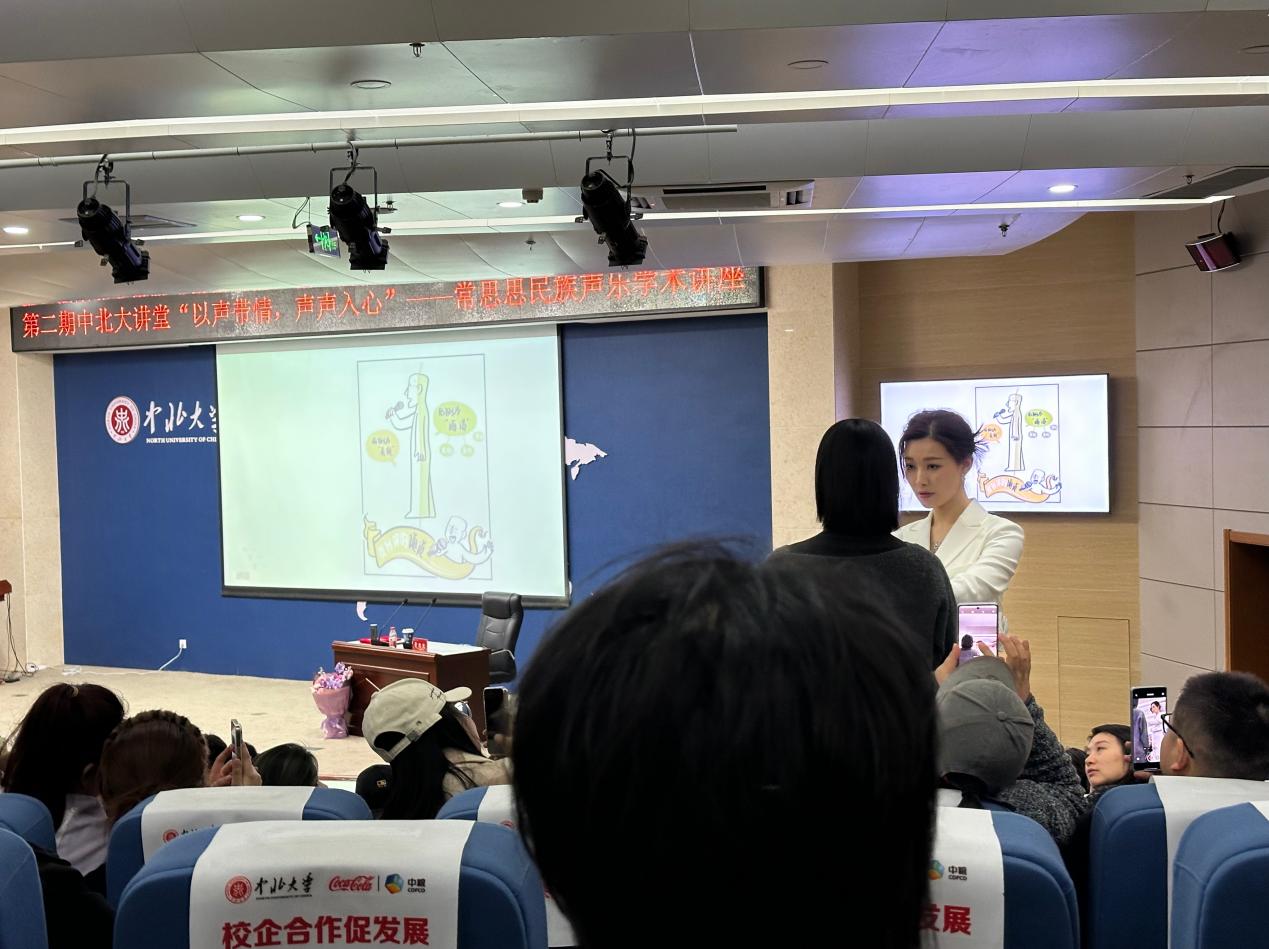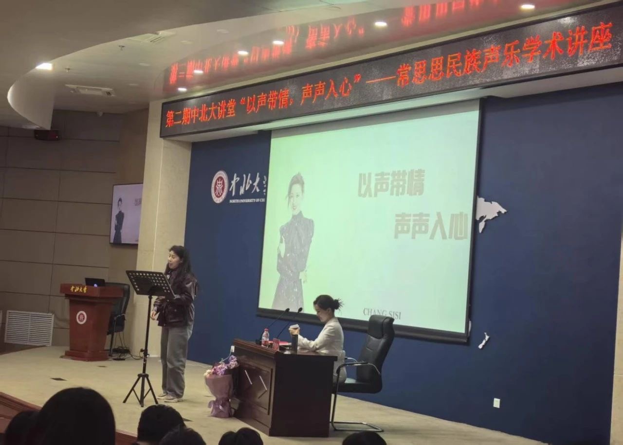 本次讲座邀请到我国著名青年女高音歌唱家常思思,她以其独特的艺术魅力,为在场师生呈现了一场视听盛宴。公开课上,常思思不仅展示了高超的演唱技巧,还为山西各高校教师、中北大学艺术学院的学生进行了一对一的专业指导,耐心细致的讲解如何用声音诠释中国古诗词艺术歌曲、中国民族歌剧等不同风格的作品。常思思专业且富有激情的指导,点燃了在场师生的热情,大家积极参与互动,现场学习氛围浓厚。