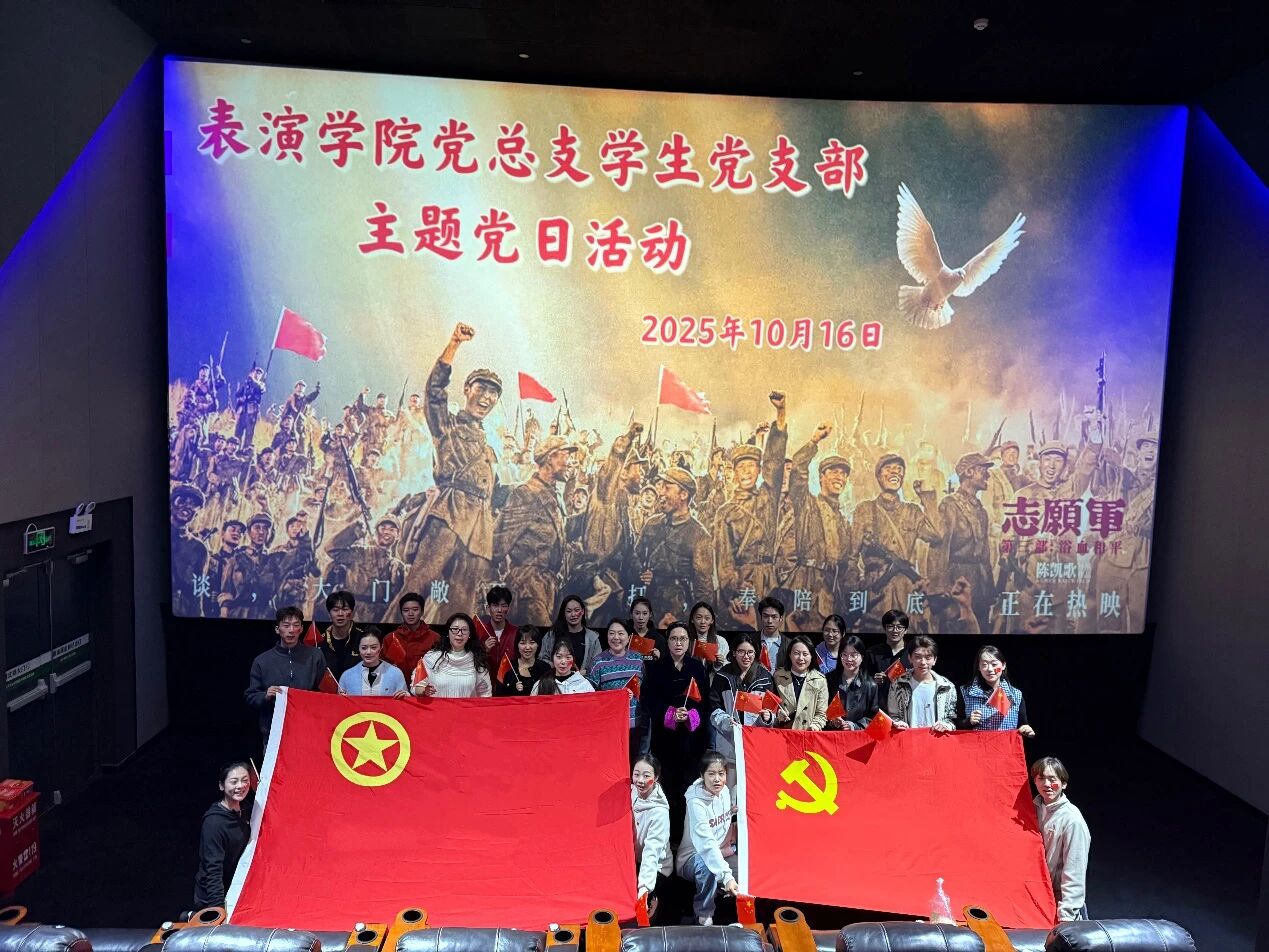 为传承红色基因、厚植爱国情怀,10月16日,表演学生党支部开展“党旗引领聚青春 光影铸魂颂祖国”主题党日活动暨党团共建活动。学院副院长汤瑞、党总支副书记郑敏、支部全体师生党员、部分团学骨干齐聚一堂,共同观看红色电影《志愿军》,在光影浸润中凝聚党团奋进力量。