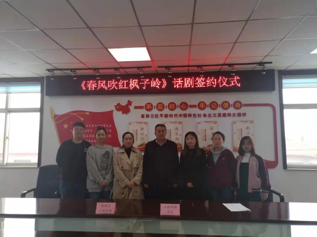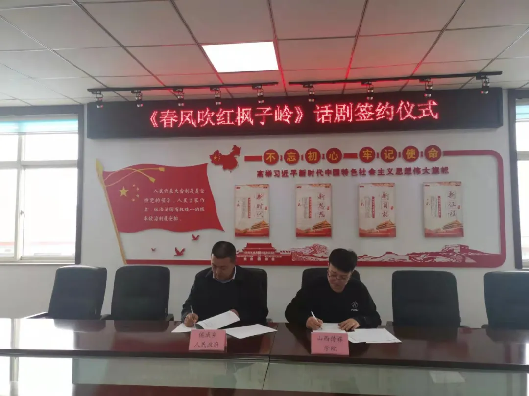 太阳集团tyc151cc副院长汤瑞同表演专业教研室主任常诚及几位课题组成员赴太谷区侯城乡参加话剧《春风吹红枫子岭》签约仪式。
