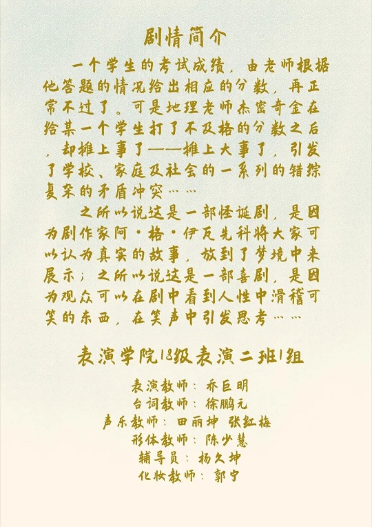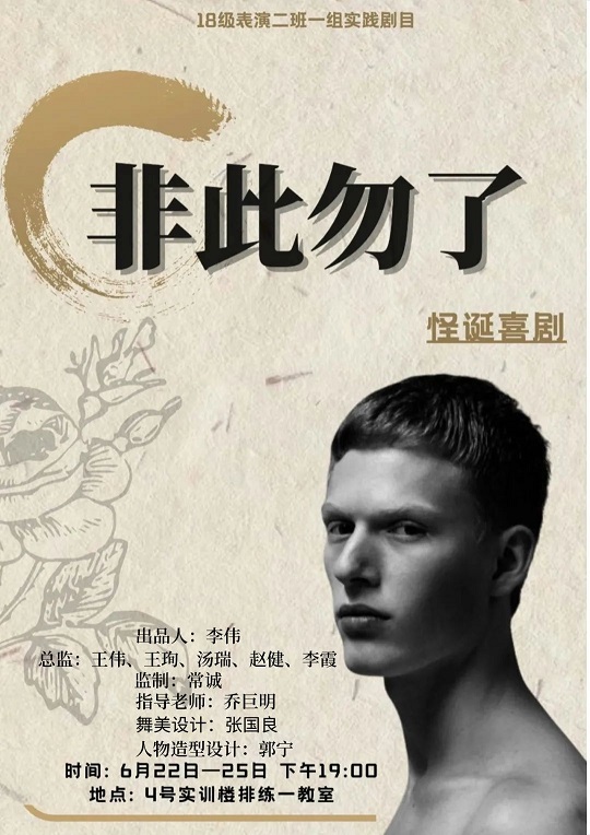 太阳集团tyc151cc2018级表演二班一组实习剧目《非此勿了》将于2021年6月22~25日晚上19:00tyc151cc太阳实训4号楼排练1教室正式开演。
