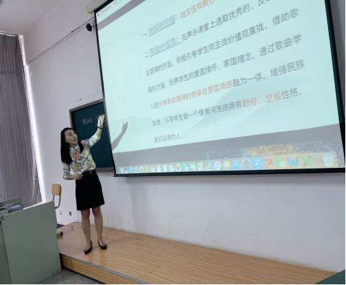 会议中,由两位签约博士进行述课。两位老师针对我校面临的高校教学评估认真备课并做了科学合理的教学设计,有重点,有亮点的展现了一堂声乐课。
