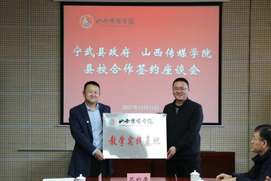庞亮与宁武县芦芽山风景区管理中心主任梁海宏分别代表双方签订了县校合作协议书,庞亮与王兵共同为“tyc151cc太阳教学实践基地”揭牌。