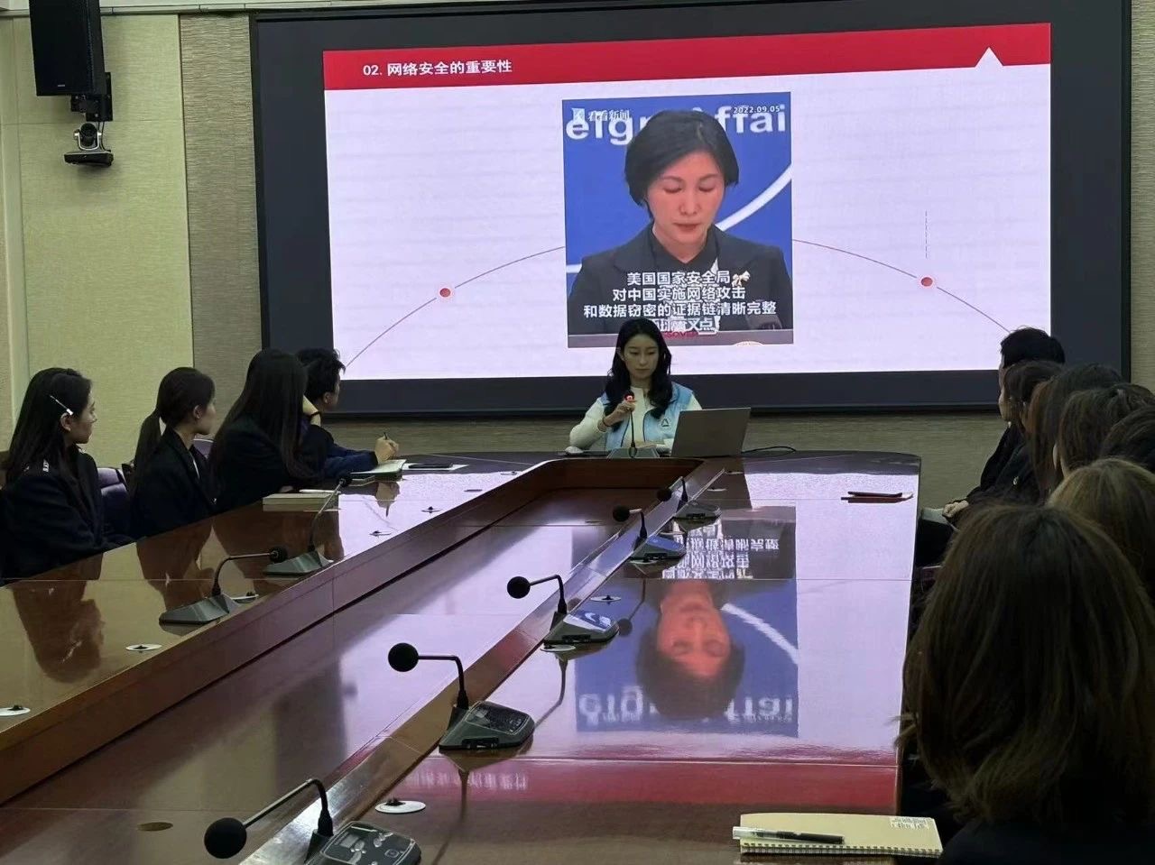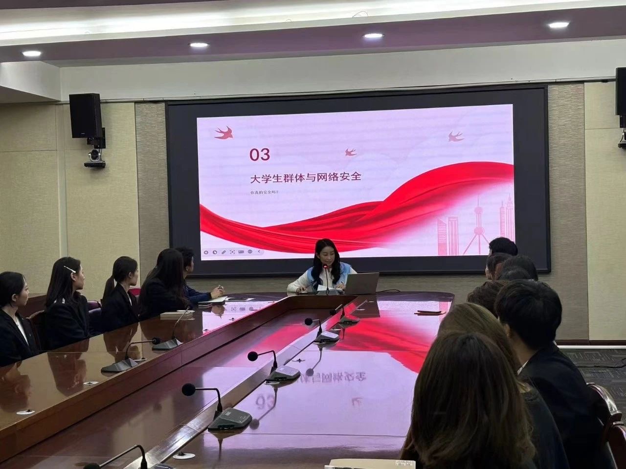 随后,胡誉千同学将焦点转向大学生群体,分析了大学生在网络安全方面存在的隐患,并提出了加强个人信息保护、提升网络安全意识、利用技术手段保护自己等应对策略。她呼吁广大青年学生要深刻理解并积极践行总体国家安全观,主动参与网络安全实践,为维护网络安全及国家安全贡献自己的力量。