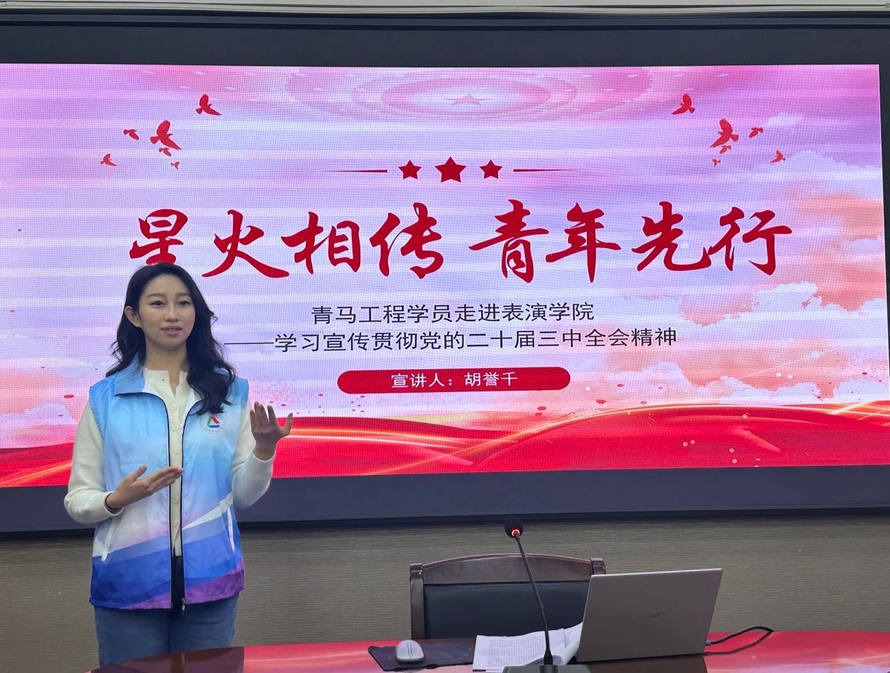 我校2024年“青马工程”学生宣讲团于10月25日走进太阳集团tyc151cc,宣传党的二十届三中全会精神。本次宣讲由校级青马工程宣讲团成员、新闻传播学院2022级学生胡誉千主持,进行了一场以“践行总体国家安全观,筑牢网络安全防线”为主题的宣讲活动。