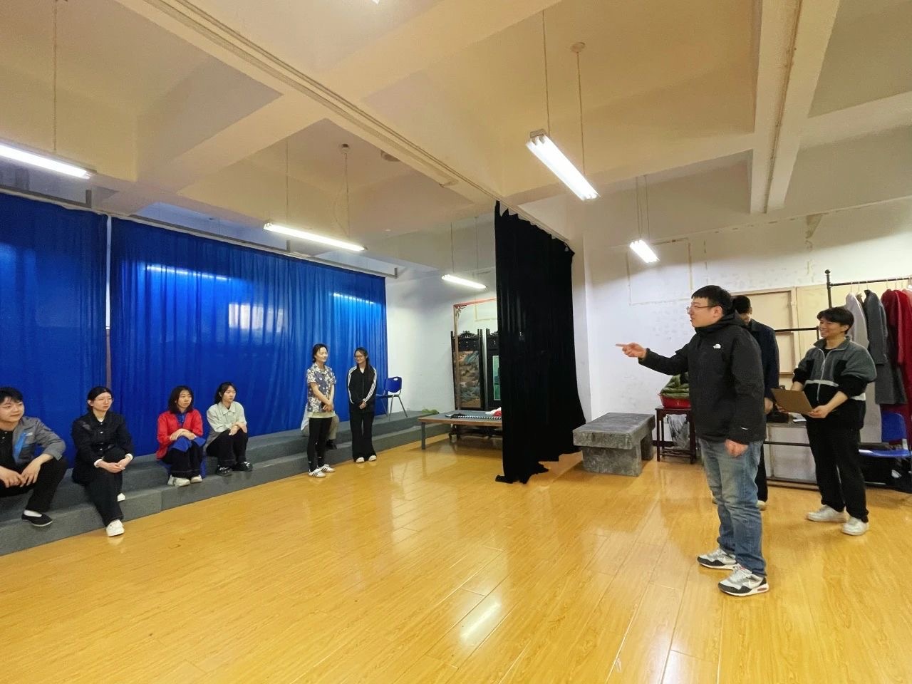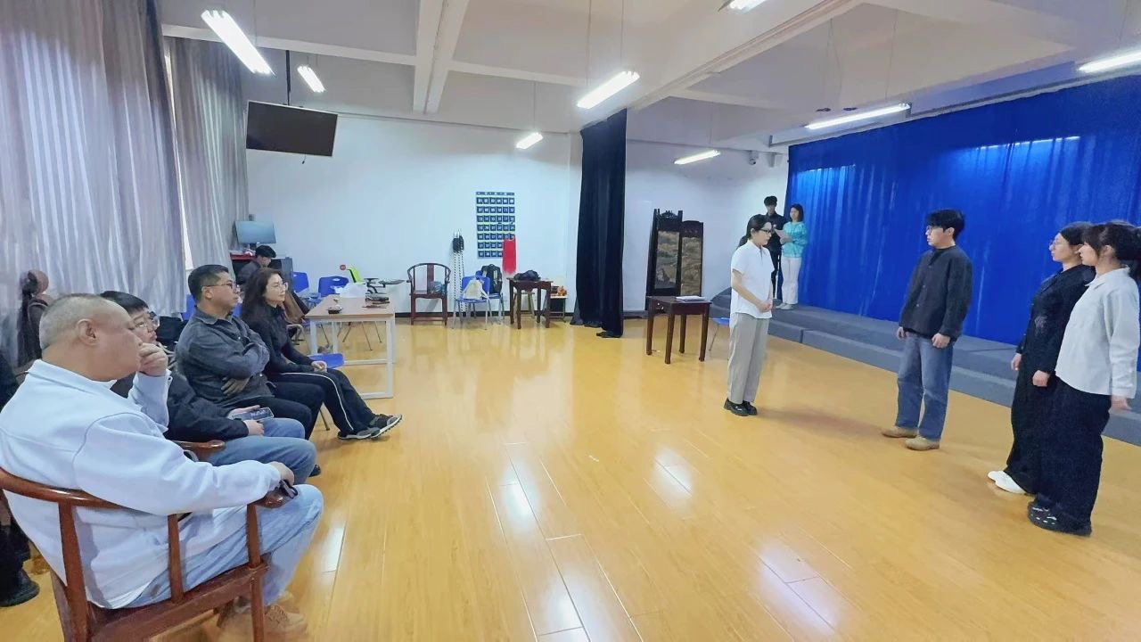2025年4月17日中午12:15,太阳集团tyc151cc教工第一党支部充分发挥党建引领作用,深入学生创作一线,对太阳集团tyc151cc学生自编自导的艺术思政课程项目——话剧片段《张桂梅》进行了专题指导。太阳集团tyc151cc党总支教工第一党支部的赵健、常诚、王国梁、牛丽媛老师参加了本次指导工作,结合专业特长,从剧本创作、艺术表达、政策解读等多维度为学生提供支持,以实际行动践行“我为群众办实事”的宗旨,推动思政教育与艺术实践的深度融合。