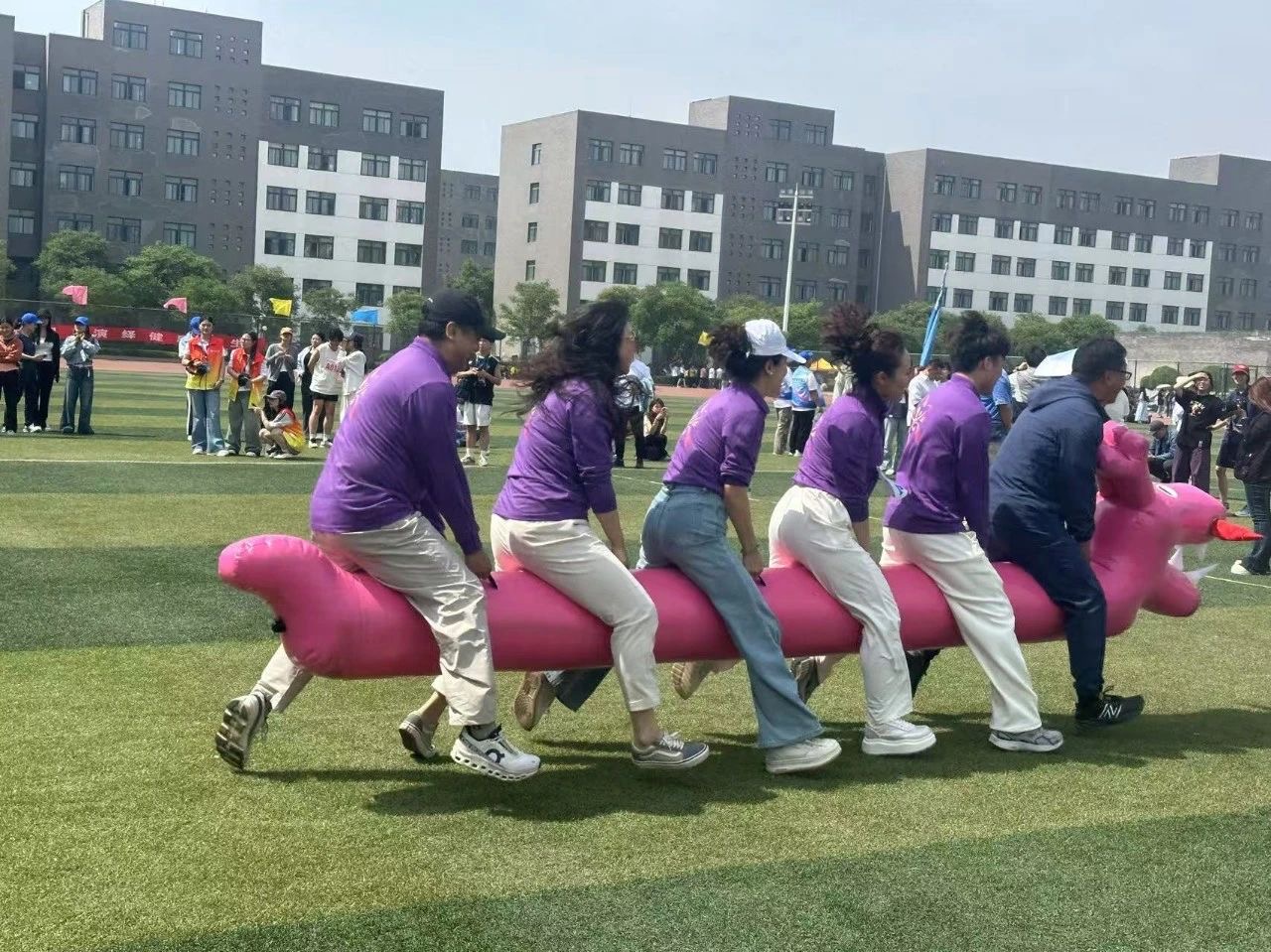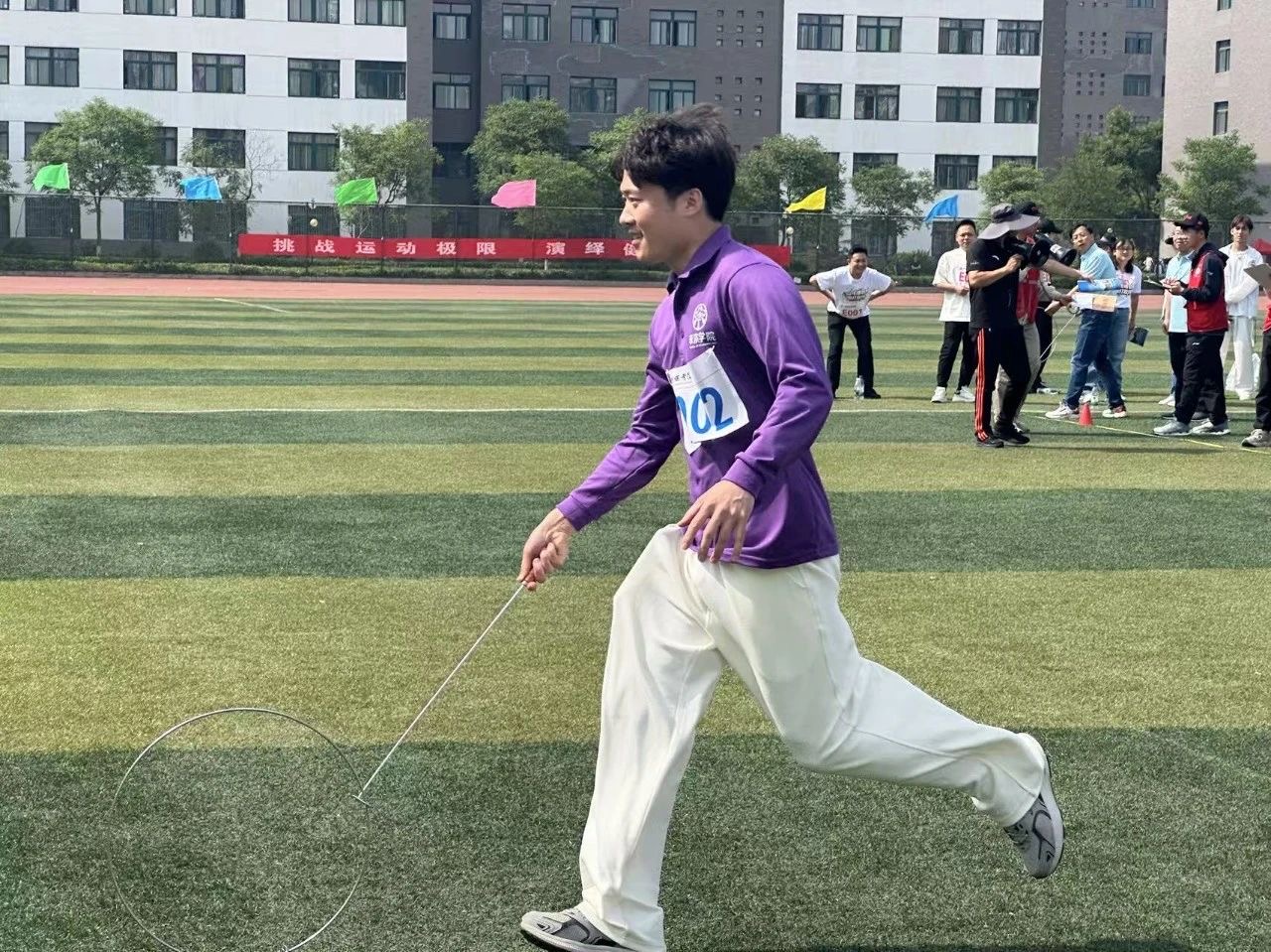 在运动会的赛场上,老师们也不甘示弱,纷纷化身运动健将,为学生们树立了拼搏的榜样。趣味运动项目中,老师们默契配合、欢声笑语不断。男女混合拔河比赛中,老师们此刻全然变了模样,咬紧牙关,脖颈的青筋随着每一次发力跳动,院服被汗水浸透,一起齐心协力将红绸一寸寸往回拽。赛场之外,老师们又化身为贴心的后勤保障员和热情的啦啦队,时刻关注着学生们的身体状况,为每一位参赛同学加油助威。他们用实际行动诠释着对教育事业的热爱,对学生的关怀,让太阳集团tyc151cc这个大家庭更加温暖而有力量。