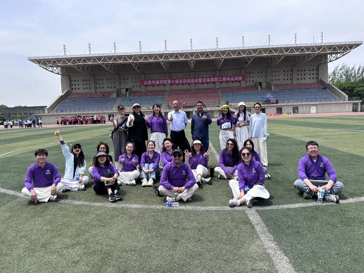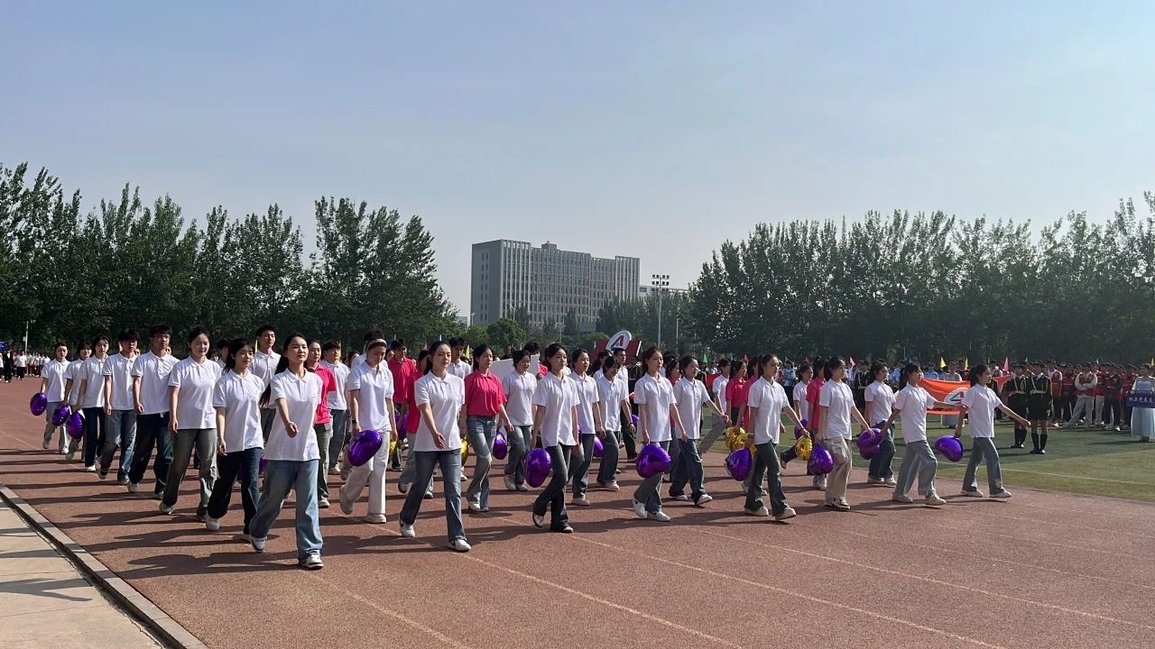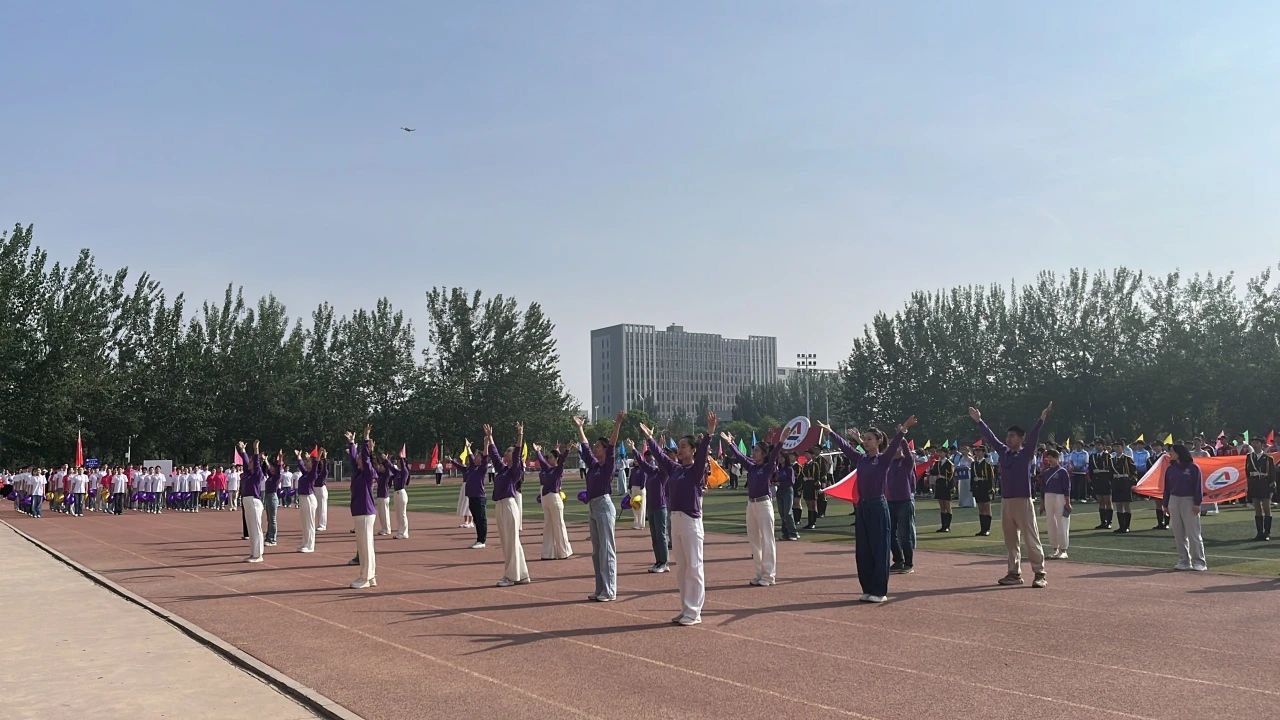 在开幕式上,教师们身着紫色院服,迈着整齐的步伐,同时为运动会带来了精心排演的舞蹈——《再唱山歌给党听》。随着悠扬的乐声响起,他们仿佛化身为一群热情洋溢的舞者,用灵动的身姿和饱满的情感,将对党的热爱与敬意融入每一个舞步之中。舞蹈的编排独具匠心,既有民族舞蹈的韵味,又融入了现代舞的灵动。老师们整齐划一的动作、默契十足的配合,展现出太阳集团tyc151cc教师团队团结协作、积极向上的精神风貌,为整个运动会注入了温暖而激昂的力量。