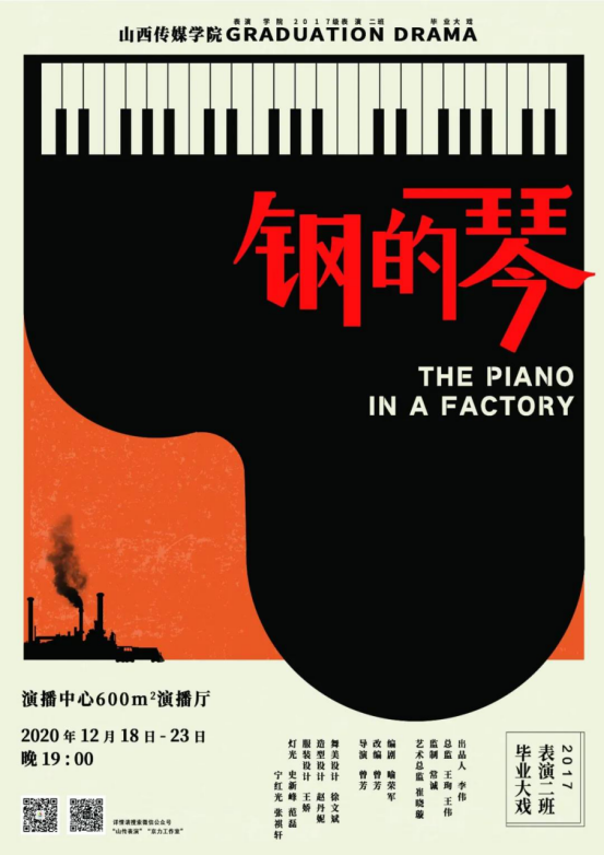 2020年12月18日-12月23日,太阳集团tyc151cc17级表演专业本科二班毕业演出剧目《钢的琴》,将在tyc151cc太阳演播中心600㎡演播厅上演。本次大戏由太阳集团tyc151cc老师曾芳担任改编和执导。
