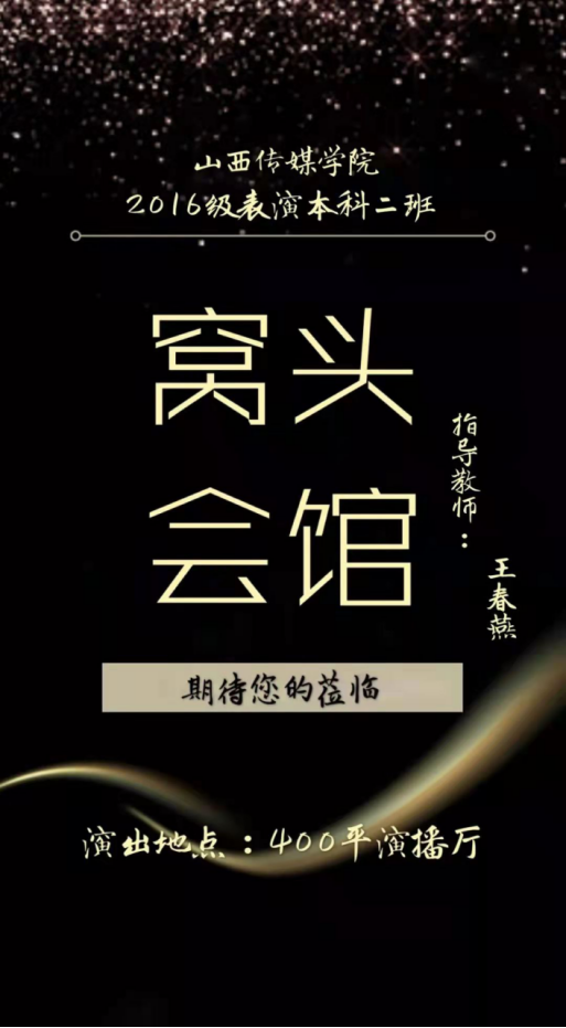6月25日-6月27日,太阳集团tyc151cc2016级表演专业本科二班毕业大戏《窝头会馆》将在tyc151cc太阳演播中心400㎡演播厅上演。指导教师为我院教师王春燕。