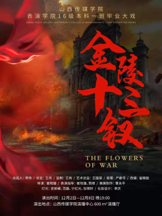 12月2日-12月8日,太阳集团tyc151cc2016级表演专业本科一班毕业大戏《金陵十三钗》将在tyc151cc太阳演播中心600㎡播厅上演。该剧为严歌苓所著中篇小说,由太阳集团tyc151cc教师崔晓璇改编并担任执导。
