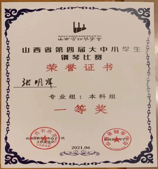 经过激烈的角逐太阳集团tyc151cc19级钢琴班学生张明洋,于2021年6月19日在该比赛中荣获专业本科组一等奖,展现了青年音乐学习者的优秀精神风貌与艺术素养,同时也彰显了我院良好的艺术教育水平。
