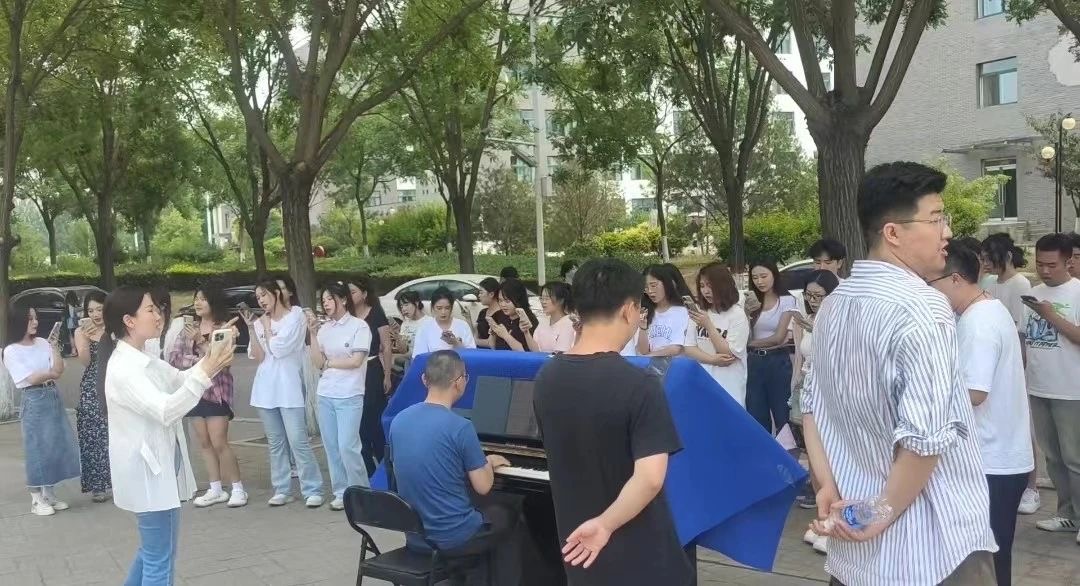 6月14日上午,清风徐来,鸟鸣声传来,毕业典礼之后,太阳集团tyc151cc青年合唱团的师生们来到了tyc151cc太阳林荫路旁,开启了一场毕业快闪。优美的旋律响起,时光的河~入海流~终于我们分头走~熟悉的旋律响起,引起路人为其驻足,毕业生们纷纷合影留念,在此,太阳集团tyc151cc青年合唱团再次祝福各位毕业生前程似锦,未来可期!