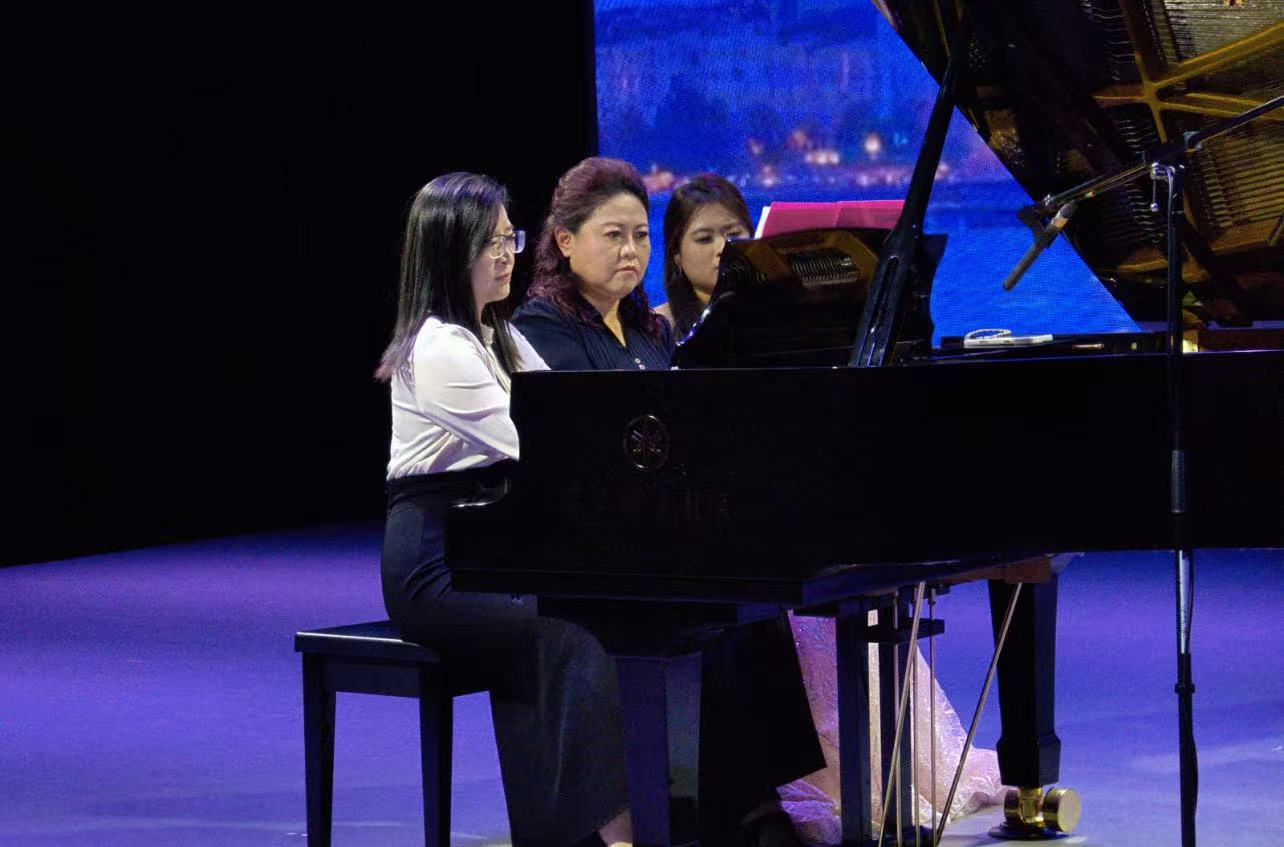 上半场:以李斯特《匈牙利狂想曲第六首》的激情旋律拉开序幕,《山丹丹开花红艳艳》用深情曲调展现中国作品魅力,海顿、肖邦的经典曲目凭借细腻演绎获满场掌声;双人联弹的罗西尼《塞维利亚理发师》序曲,更以默契配合将现场气氛推向高潮。