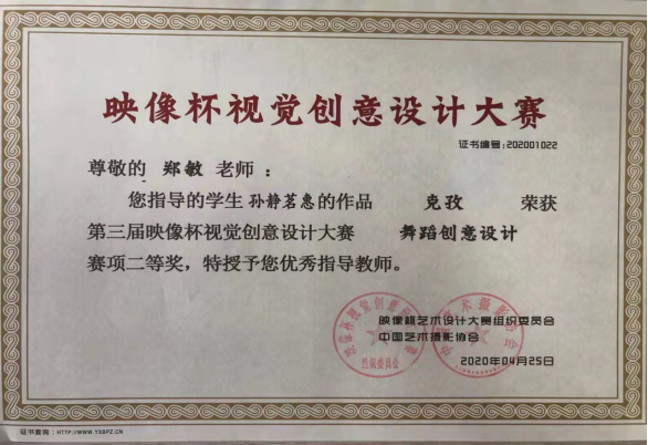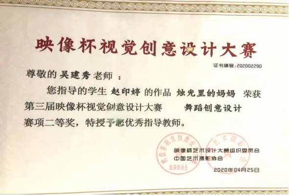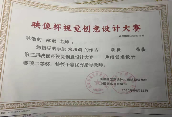 本次大赛太阳集团tyc151cc由舞蹈专业教师郑敏和吴建秀老师带领学生参加,并取得了优异的成绩。郑敏老师所带学生的五部参赛作品中,获得两项一等奖,三项二等奖;吴建秀所带学生的三部参赛作品,获得一项一等奖,两项二等奖。