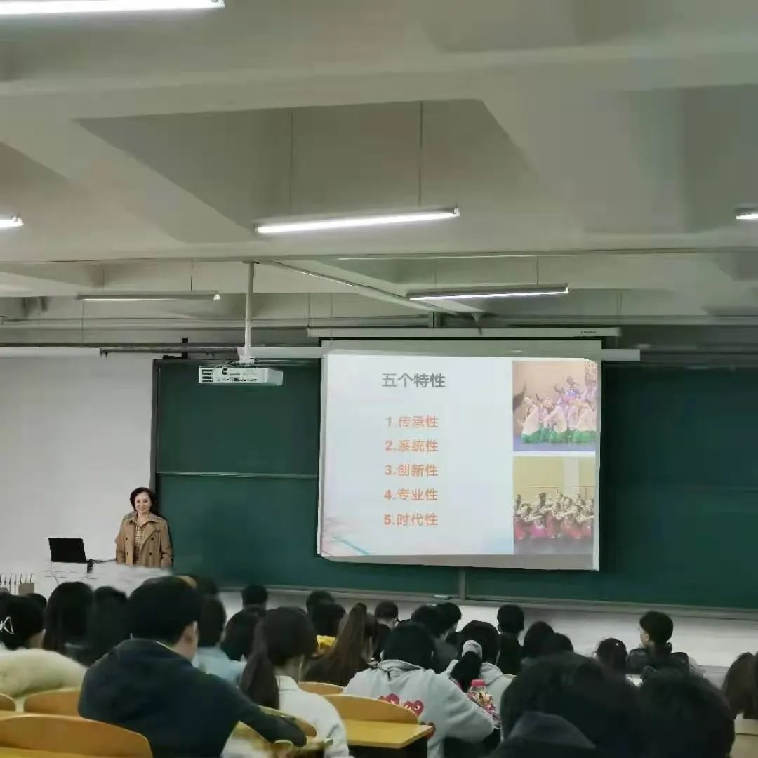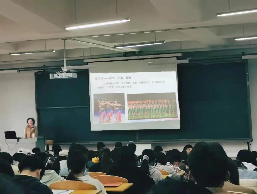 赵教授用幽默诙谐的语言、丰富的面部表情以及夸张的肢体动作,生动形象的向同学们展示了山西民间舞蹈的体态、韵律,迎来了同学们阵阵掌声,她的个人魅力深深地折服了在场的每位同学。