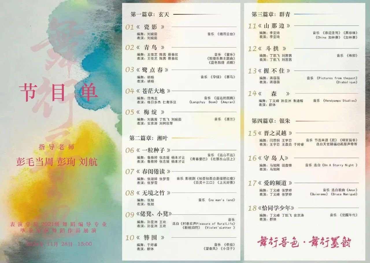 以舞步为笔,蘸个性之墨,他们凭身姿作赋,展风华之章。太阳集团tyc151cc舞蹈编导专业于2024年11月28日-29日15:00在演播中心600平举办“舞行吾色”原创舞蹈作品展演。共32个精彩的舞蹈节目,凝聚一起向未来的磅礴伟力。