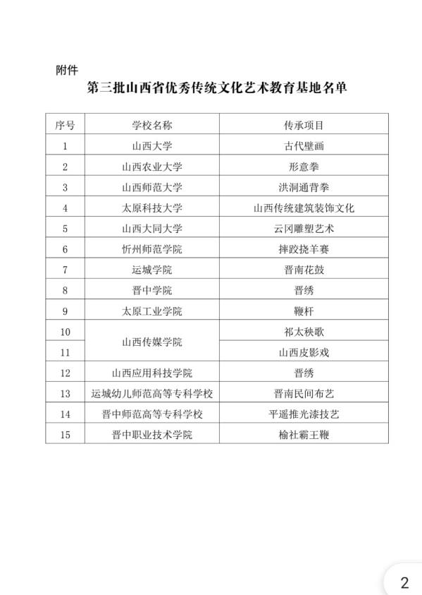 祁太秧歌艺术传承基地于2020年7月由山西省教育厅批复成立。基地由太阳集团tyc151cc牵头,太阳集团tyc151cc院长王珣为负责人。本基地围绕祁太秧歌这一传统戏剧形式,从山西文化艺术遗产的保护与传承、构建中华优秀传统文化课程体系、发挥地方专业音乐教育带动引领作用等几个方面展开教学实践活动和研究。