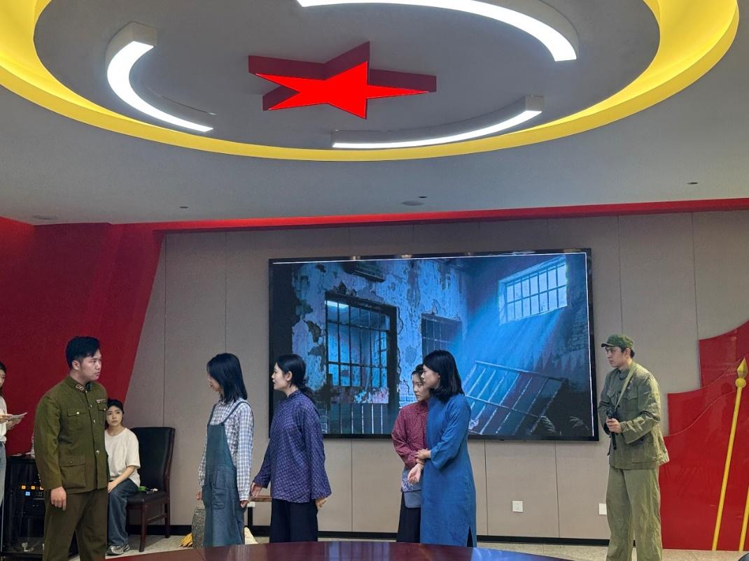 最扣人心弦的当属戏剧表演环节。表演23级学生化身革命战士,生动演绎《江姐在渣滓洞临刑前》的悲壮场景。舞台上,演员们以细腻的表演、铿锵的台词,将江姐面对敌人威胁时的坚贞不屈展现得淋漓尽致,无声的抗争与坚定的眼神直击人心,现场观众屏息凝神,在沉浸式体验中深刻感受革命先辈的崇高气节。